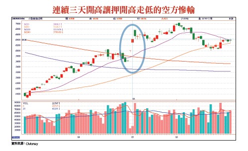 這樣操作的最大風險就是開盤價到前半小時低點這段,但因為已經開很低了,開低後下殺的力道不會太強,所以經驗上這段區間都不大,是正常人都可以忍受的範圍。出場點怎麼設?最單純的作法就是抱到接近收盤再出,但也可以更進階,有機會可以賺更多,怎麼做呢?開低搶反彈看三十分線 跌破前一根K低點出場拉出三十分K,當這根三十分K棒跌破前一根三十分K的低點時出場。這樣做的目的是通常台股這種開低走高的盤都會有尾盤獲利回吐賣壓,所以當盤勢短線不再走多(走多的定義是高點過前高,低點不破前低),就可以出掉了。以最近兩次來說,如果是用進階出場,兩次加起來會比尾盤出場多賺二十七點(概算的,不考慮滑價),就看你要選擇哪種作法。開高空台指期失敗 二○○九年有慘痛經驗我知道你可能想問說既然開低走高可以搶反彈,那如果開高的話,是不是也有機會可以開盤價去空,然後賭開高走低,我自己是不太會去賭開高走低,因為股票以做多為主流,會去空的還是佔少數,所以開低走高比較有機會,開高走低相對來說機會小,加上我還記憶猶新二○○九年連續三天台指期開盤就漲停的恐怖盤,如果開高去空,你會補不回來。最後提醒一下,搶反彈的心態是賺到是撿到的,不能當作一個穩定收入,就好像你不會拿一百萬去買樂透一樣,所以請務必用小資金去搶就好,假設以一口小台來做,二百點就賺一萬,兩口小台就賺兩萬,但做五口大台,可能反而會因為壓力太大而賠錢,所以記得要先講求不傷身體,再看利潤。希望這招可以幫到你。