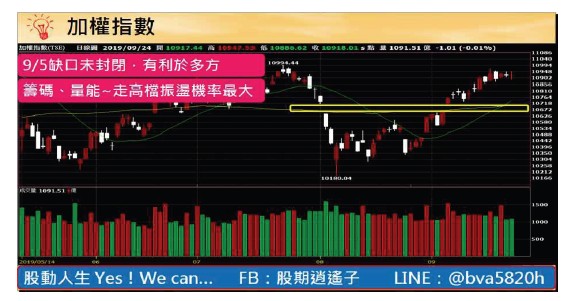 震盪出好股盤面消息多空分岐,寬鬆資金面的利多,衰退基本面的利空,使得全球股市包含台股加權指數陷入一個非常膠著,高黏度的震盪盤,從型態上來看加權指數,大盤目前仍在各均線之上,而且均線翻揚呈現黃金交叉,這提供了一個很好的支撐,後勢只要沒有跌破九月五日缺口,盤就有利於多方。然面臨一一○○○的反壓,成交量卻無法有效的放大,大盤用震盪盤堅的方式挑戰今年的高點機率最大,這點可以從外資的倉位得到了呼應,大盤高檔震盪,不過度追價,這個盤仍然可以做多,仍有好股票輪流冒出頭!行情來到「萬一」,投資朋友不敢買股票,人之常情,我們心裡也非常清楚,這裡是最後一波的機率還是大了些,然爆點出現前,缺口未封閉前,我們實在是不用過度預設立場。把握類股輪動的節奏,相信要獲利不是太難的事,我們在群組分享的鮮活(1256)、宏觀(6568)、雍智(6683)、燿華(2367)、南亞科(2408)……驗證了一○%、二○%、三○%、五○%、一○○%,這些利潤都來自於我們沒有預設任何立場創造而來,後勢即便缺口真的封閉,我們也沒在怕的,我們做空也是很有皮條,而爆點如何觀察,我們在周刊、群組也多次分享,投資朋友可以多加善用,至於還有那些好股票會輪動,歡迎大家加入「股動人生」。