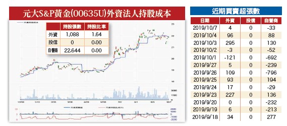 現階段,因美國經濟數據快速惡化,各資產價格開始反應市場對於美國經濟可能步入衰退的預期,呈現美元指數跌、美股跌、美公債價格漲(債券殖利率跌將擴大負利率債券規模)的結果,對於黃金價格均將產生正向的影響,有利延續止跌回升的力道。時間再拉長一點來看,與黃金價格呈現負相關的三項變數,因美國經濟增長動能趨緩,美元指數、美股的下檔風險恐高於上檔風險,聯準會再次降息機率高,隱含美國實質利率仍會向下,將成為未來黃金價格的潛在支撐力量。在此趨勢發展下,不管是投資或避險需求,黃金應會是所有投資人都該進行的資產配置。尤其偏好操作股市的投資人,面對可能的潛在系統性風險,與其尋找抗跌的個股或持有現金,建立黃金部位或許更有機會逆勢獲得正報酬。在台股交易的相關ETF有元大S&P黃金(00635U)、元大S&P黃金正二(00708L),風險偏好程度較高的投資人也可考慮元大道瓊白銀(00738U)。交易上除了要觀察期貨報價變化、注意報價內外盤價差較大外,也需留意該商品的最新估計淨值,代碼分別為00635UN、00708LN、00738UN,可避免因短線價格偏離造成追高殺低的窘境。