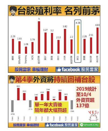 不過股市的反應是最真實的,美股直接開高一度上漲超過二百點以上,這就說明了美國經濟不算差,只是稍稍往下滑,但對於勞動市場來說表現不錯,接下來就等美中談判結果了。至於台股,相對其他國家表現特強,主要原因是我們以製造業佔大宗,PMI無論是官方或民間版都落底翻揚,九月直接拉上五十重返榮枯線上,跟其他國家截然不同,加上台商返台投資金額超過六千億,供應鏈移轉對於台灣內需與對美國的出口都有相當大的貢獻,台灣股息殖利率高達四.三%,以全世界來排名,算名列前茅數一數二,以外資的觀點,與其投資負利率公債不如買台灣股票,就算不買股,台灣央行利率連續十三凍,重貼現率都有一.三七五%,放定存都划算。更何況台灣還有別人沒有的特殊利多,就是距離二○二○年一月總統大選不到百日,可望進一步吸引外資進駐,最近國際動盪,投資人買盤縮手,積極的投資人反而應該要趁這時候,擇優逢低分批布局,當大部分的人都感到悲觀時,贏家總是少數人。投資就是一場心理戰,更多投資訊息,請鎖定LEO的股民當家Line生活圈群組@hcd5326j,成為LEO好朋友,以股民當家-幸福理財為最高宗旨,挖掘股票背後的故事。