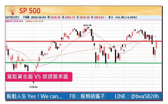 十月在過往雖然上漲機率高達七成,但卻是用一個上下振幅相當大的走勢來呈現,過去一個禮拜的國際股市並不平靜,雖然周漲跌不大,但細看每個交易日的話,其實振幅相當大,主要因為看到的經濟數據並不太理想,包括消費者信心、製造業與服務業的數據、ADP就業的數據、非農就業人口都傳出不好的消息,國際股市在過去一個禮拜的上半周,因經濟數據不理想、美歐加稅而下跌,下半周則因經濟數據不理想,市場期待央行的降息救市而回升,這種走法,目前看來還會持續一陣子!全球股市頸線的位置常追蹤我節目的都知道,美股三大指數有一個頸線的強大支撐,如圖所示即為綠色這條線,在紅綠線之間,美股會走上下振幅波動大的區間,投資朋友可以看到,過去幾個月美股打到頸線就做收腳,而站上紅色這條線,代表的是美股有機會用震盪盤堅的方式來挑戰今年高點,而一旦確認跌破綠色這條線,代表的是支撐不再是支撐,支撐變反壓,行情將進入空方時間!在降息循環下,我們常提到,要提防有最後一波的可能,爆點何時出現,我們就觀察VIX恐慌指數何時攀升,畢竟繼續降息不見得是好辦法,降息跑出來的錢全都跑到金融市場,沒有流向生產市場,全球負殖利率公債金額屢創新高,各國如何償還這龐大的債務?再打一次世界大戰?這隻灰犀牛何時暴衝,誰也說不準!現階段,寬鬆資金與經濟停滯,繼續拉扯,看那方出現壓倒性的力量,PARTY繼續的關鍵或許會在中美貿易,景氣衰退有很大的原因來自於川普跟全世界槓上,但先前我們也不斷的跟大家打預防針,光美日貿易戰就打了二十年,以中國目前跟日本當下的政經環境來看,中美貿易戰可能在你我有生之年都還找不到答案!回頭來看加權指數,台股這一波,相較於國際股市是來得強勢,除了受惠中美貿易的轉單效應,還有很大一部分的原因歸功於資金回流,在型態上,大盤會繼續走高檔震盪,十月三日跳空缺口,若能儘快回補,則盤還有機會再挑戰一次高點。從外資籌碼上來看,外資認為十月三日的回檔,僅是漲多修正,然一一○○○點近期的走勢卻是壓力重重,操作上只要不過度追價,掌握到類股輪動的節奏,相信獲利還是會有。後勢十月三日收腳的低點會是關鍵,這點位也約是月線所在位置,一旦跌破,下探季線的壓力就大了,季線也約是目前台股的頸線位置九月五日的缺口,這缺口一旦跌破,行情將進入空方時間!