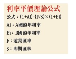 此時,套息者就會設法舉借日圓,再將資金兌為美元。原因之一,是預期美元兌日圓會持續升值,可以賺取匯差。其二,若美元持續升息,代表資金存入美元的無風險報酬率也將增加。既可以賺匯差,又可以賺息差,這樣的炒匯模式,就會引來大量的套息交易。所以可證,利率的趨勢變化,不僅會影響債市,也會影響到匯市。我們從「利率平價理論」的公式就可以得知,兩個國家之間的利率變化,會直接影響到遠期與即期匯價的變化。利率平價理論是基於匯率均衡理論,由兩種不同貨幣之間的利率水準,用即期的匯價去推算未來兩國貨幣之間的遠期匯率理論價。利率平價理論用於說明利率市場及匯率市場之間相互關係。或簡言之,匯市的即期匯率與遠期匯率的差,或外匯期貨與即期匯價之間的差,其實就是兩種貨幣間的利率差(又稱「水差」)。與指數期貨市場的正價差表示市場氛圍偏多,逆價差表示市場氛圍偏空的概念是完全不同的,所以不能把外匯期貨與現貨之間的價差,當作預測未來匯價變動的參考。