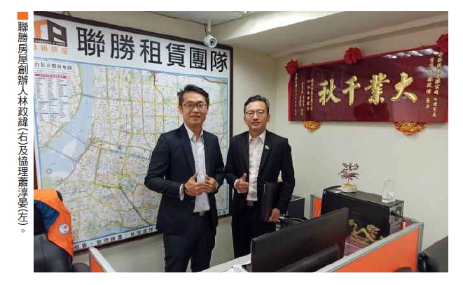 林政緯對每件事情親力親為,常帶著主管及員工,一起打掃、整理房子,因此聯勝的每一位員工都會簡單的修繕,像是換燈具、整理家具等,只要房客一退租,當天就會派人清潔打掃,房屋不管新舊,一定重新粉刷或補漆,細到連廁所的silicon發霉,都會刮掉重新補上,「我們就是專業的管家,大家一起把事做好。襯衫脫下來,刷完油漆再穿上,把房子從無到有、變得漂亮,就是我們的價值。」「這就是差異性」,林政緯說,室內抽風機、瓦斯爐、熱水器一旦有異狀,一定在兩天之內解決,尤其是夏天冷氣故障,一般必須排隊修理,聯勝則有自己的合作廠商,不管是包租或代租,最少都是在兩三天內解決。退租前一個月就會詢問房客要不要續約,若無,則約時間點交並結清水電費。他更分享到,有一位房客辦理退租,正好房東在國外,後來緊急調戶籍謄本找到房東的家人,聯絡在國外的房東,才順利在第一時間解決問題。更特別的是,簽約當天,房客遲遲未來,電話聯繫才知房客出車禍,這時房東二話不說,馬上和業務前往車禍現場探視房客,甚至幫忙叫拖吊車,協助處理善後,隔天才順利簽約。利潤壓低 自家仲介團隊帶看還有一個溫馨的案例,一位房東覺得媽媽的生活費不夠,要調漲六千元租金到一萬六千元當作孝親費,但以當時的屋況根本不可能,於是聯勝提議與房東各出一半的修繕費,聯勝包租房子五年,讓這位高齡的母親每月有一萬六千元的生活費,可安享晚年。親切的對待,也展現在租金的催繳,遇到欠租的問題,聯勝會委婉溝通協調,不給房客造成壓力,並約定該繳的日期,若房客再三拖延,就會請房客搬家,並建議房客往郊區租便宜的房子。聯勝房屋在市場上只做整層兩、三房和獨立套房,不做隔套(包一整層、分隔成套房出租),除了跟市場作出區別之外,因為隔套要翻修,雖然隔套賺錢效率較高,但可能也因此會傷害到屋子的結構。林政緯說,公司利潤壓得比較低,招租比較不會遇到麻煩,「我們有自己的仲介團隊,每天都有帶看的客人,成交率不擔心。」