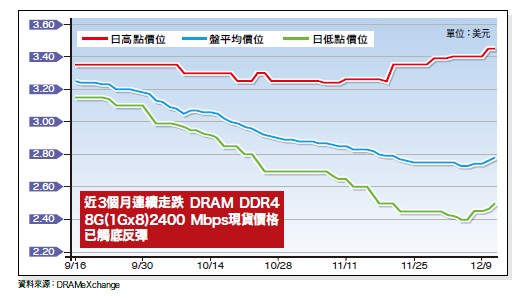 由於受惠於市場供給端廠商庫存水位持續下降,以及市場需求數量不斷擴增,因此促成現階段 DRAM現貨價已經見到「止跌回漲」情況,外資法人也因此出具最新投資研究報告指出,針對台灣記憶體DRAM大廠南亞科(2408)給予「買進」投資評等,而上檔目標價更上看至每股八十一元。製造廠供給庫存續降需求增 DRAM現貨價已見止跌回漲根據TrendForce記憶體儲存研究(DRAMeXchange)調查顯示,因目前各家DRAM供貨廠商庫存數量仍舊下跌,加以資料中心(Data Center)建置、拉貨需求仍持續強勁,且明(二○二○)年第一季全球包含中國在內的5G手機市場,對於搭載DRAM的需求數量不斷擴增下,近期三個月來連續走跌的DRAM現貨價格,已經開始觸底反彈。其中,DDR4 8G(1Gx8)2400 Mbps產品更上漲了二.八八%,DDR3 4Gb 512Mx8 eTT 產品亦走揚一.○四%漲幅,顯示DRAM市場已自先前的報價連續下跌窘況走出,開始反彈,已經嗅到回溫氣息。根據外資研究報告指出,明年於5G智慧型手機、資料中心等應用需求數量同步提升下,品牌廠、代工廠因此開始擴大對DRAM的採購力道。其中,5G智慧型手機方面,因旗艦型機種將搭載六GB至十二GB DRAM,與4G高階旗艦款手機相較,所搭載三GB至六GB DRAM的規格,明顯要擴增許多,市場對DRAM需求量因此開始增加。除了市場需求端拉貨數量提升之外,外資報告進一步點出,南韓的全球記憶體龍頭廠「三星電子」,目前於DRAM量產製程方面,已開始導入「1z奈米」級製程,除了透過記憶體IC晶圓製程的不斷微縮,期盼可因此擴增「單位生產量」之外,推先至第三代一○奈米級的1z奈米級製程後,由於後續的製程進一步微縮空間已逐漸減少下,因此造成製程升級的「成本效益」開始遞減。