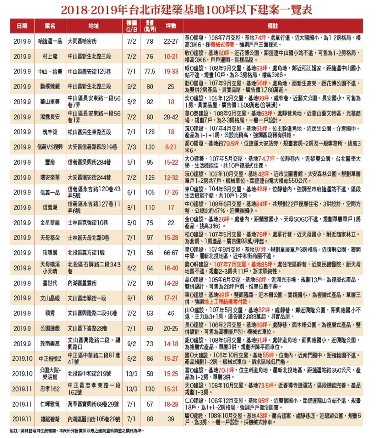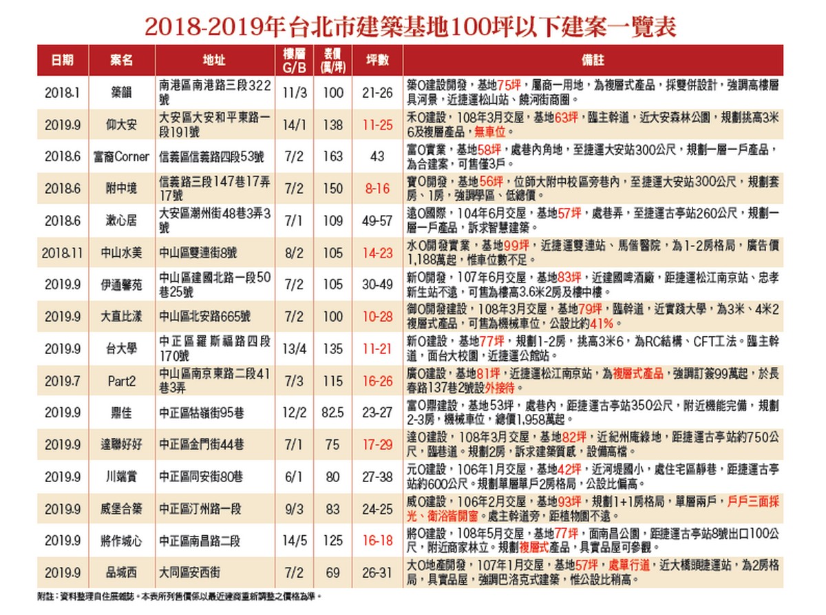 Q台北市地狹人稠,近年在一地難求情況下,有些危老重建之小基地建案公設比居然高達四七%,因此,想請教莊教授,小基地建築可能潛藏哪些重大缺點?購屋前應注意哪些重要事項?A:有些基地不方正、地形狹長或零碎不整的危老重建案,不僅平面配置不易,也很難兼顧外部與內部空間規劃設計,因此,購屋之前就應先了解附表所彙整銷售中之實務案例十二大潛在缺點,再參考八大建議事項為宜。有鑑於近年大樓公設比普遍高達三○%至三五%,政府擬逐步推動實坪計價制,並自二○一八年一月一日起雨遮、屋簷不登記不計價,不過小基地建築卻仍有公設比高達四七%者,因此,購屋時就應格外注意以下常見小坪數產品之八大缺點及建議事項。一、基地狹小影響規劃設計:常見小坪數住家之缺點為空間分割零碎以及各樓層走道浪費,因此應避免選購死角或狹長屋型,尤應注意的是基地不完整、零碎狹小,甚或L形基地之格局規劃。此外,一旦格局不夠方正,連帶室內走道所占面積也會較大。二、門廳不夠氣派:門廳若高度不足或空間不夠,就無法顯現氣派的視覺效果,尤其是一棟大樓的門廳如顯得狹窄侷促,不僅嚴重影響居家品質,亦會降低其價值。三、公設偏大影響居家品質: