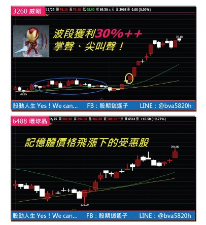 若不想追記憶體,則可往他的上游─矽晶圓找尋布局的標的,近期矽晶圓族群─中美晶(5483)、環球晶(6488)、台勝科(3532)…釋放出來的訊息,普遍正面─在晶圓代工先進製程產能利用率滿載情況下,帶動矽晶圓的需求,而近期記憶體需求優於預期,客戶庫存將調整到位,整體而言,明年營收開始加溫,逐季成長,確認產業復甦有望。接下來我們追蹤營收是否有跟著創新高,近期公布的營收、財報普遍創下歷史同期新高,以環球晶來看,今(二○一九)年前三季財報,合併營收、稅後淨利與每股盈餘(EPS)均創下歷史同期新高,累計合併營收年成長二.六%來到四四五.八八億元,稅後淨利亦年增八.三%來到一○七.三六億元,每股盈餘二四.六七元!回頭來看技術面,目前正走一個橫向擴底的區間,過區間反壓,行情隨之展開,而法人尤其是投信,近期著墨頗深,會不會是新的一波作帳標的,值得投資朋友多留心!總的來看,大盤因為半導體,或許會有一段時間維持著高檔震盪,把重點放在個股,資金會不斷的輪轉,已經慢慢盤出頭部的族群要避免過度追價,好比說我們提醒要避開的PA、PCB…族群,大盤還在創新高,但這族群的多檔個股穩懋(3105)、聯茂(6213)、欣興(3037)…高點都在一、二個月前!而資金會輪轉到低基期的個股,這波的記憶體大行情,我們完整的幫大家掌握到,選對產業,擁抱主流,相信獲利自然有!周刊的一期一會,篇幅、時間都有所侷限,投資朋友想要即時掌握第一手的多空訊息,歡迎大家掃描QRcode或是LINE輸入帳號「@bva5820h」加入群組─「股動人生」,我們一起同樂,享受財富增長的樂趣!