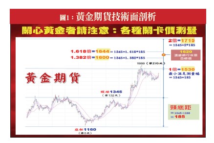 二○一九年十二月二十四日的華爾街日報,有著這麼一個斗大的標題:「台股在晶片股領軍下,重現三十年前的榮光」。想當然耳這是事實的陳述,自然是台股的驕傲;但細讀報導內文,倒是令人玩味:「台股自年初以來漲幅接近24%,離1990年創下的歷史高點(12682)只差4%。不過,根據標普全球市場財智(S&P Global Market Intelligence)統計,明年台積電與聯發科獲利預估分別成長25%、40%,帶動整體台股預估本益比突破17倍,至少為十年來最高水準,投資人是否會想獲利了結,仍待觀察……」這段話一語道出市場那種:近關情怯、欲拒還迎,又期待、又怕受傷害的糾結心情!究竟台股在二○二○年會用何種方式開局?筆者倒想用一句畢卡索的名言作為開場:「我不畫我看到的,我畫我知道的!」【我看到了資本市場榮景,卻知道這著實不合常理】「落霞與孤鶩齊飛,秋水共長天一色」,這是唐朝詩人王勃在滕王閣序的千古名句。但若我改寫成:「黃金與股票齊飛,避險共多頭一色」的話,相信大家就能體察其中玄機。Yahoo Finance近日有篇報導:AdvisorShares執行長Noah Hamman表示,各類主要資產價格都持續衝高時,代表市場熱錢亂竄,才會同時出現代表多頭的股市與代表避險的黃金齊漲的局面。歷史上這種局面不會馬上轉空,但驗證資本市場體質轉趨脆弱……圖一是黃金期貨的技術面剖析圖。如果不是把它想成黃金而是想成一檔股票,相信沒人會懷疑它在往多頭趨勢前進。言下之意,美國道瓊指數的三萬點,與黃金的每盎司一千五百美元,一定有一方是錯的。多空的攤牌點可能不必要在一月發生,但相信拖不過第一季。【我看到了貿易戰台廠的商機,卻知道貿易戰不是唯一】中美貿易戰與華為禁令,在中國與台灣之間都產生始料未及的效應。