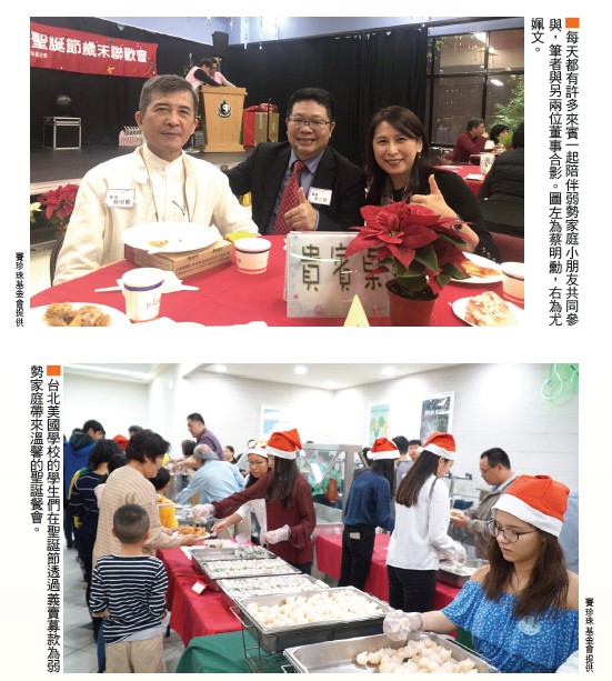 感謝台灣社會每個角落 都存在默默付出讓人尊敬的身影賽珍珠基金會尤英夫董事長致詞時表示:扶幼社指導老師Mr. Arnold,在四十多年前看到賽珍珠基金會所扶助的台美混血家庭受到社會的歧視等報導,特別帶領扶幼社同學花費整年時間,透過募集物資義賣,所得全部用來為孩子們準備過聖誕節,並固定在台北美國學校舉辦,讓孩子們知道在成長路上難免有挫折,但仍有著大家的支持同行。時光飛逝,當年的台美混血兒如今都已成家立業,成為社會的中流砥柱,近年參加對象,主要是跨國婚姻下的經濟弱勢家庭,當中許多孩子仍在辛苦的成長環境中奮戰,需要大家的扶持。透過外界提供的幫助,他們就能逆風飛翔,透過努力翻轉人生。歡慶聖誕的意義不只是交換禮物,也可以是如台北美國學校一般,持續著信念,傳承著愛與祝福,帶動著社會正向發展的生機!(作者李三財為就諦學堂創辦人、北商大東協研究中心執行長、台北市賽珍珠基金會董事)