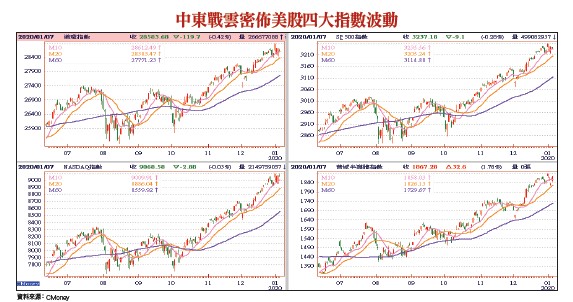 結論還是一句老話,台股從來不缺好公司,重點在於有沒有吸引人的好價位。因此,目前暫時出場的資金,只是在等待它主觀認為相對划算的價位罷了。由於台灣選後距離農曆年關長假僅剩一周,屆時法人買超的標的,肯定經過一番風險與期望報酬的比較,顯然有抱股過年的決心,間接突顯其基本面的能見度應該不差,籌碼也相對較為穩定,是投資人可留意的方向。紐約油價若突破66美元 通膨壓力容易擴大訊息面的干擾總是投資人揮之不去的困擾,綜觀近期訊息面的影響力,比較值得投資人留意的是國際油價的變化,因為國際原油價格會影響全球通膨數據,而通膨率又可能干擾各大央行的貨幣政策。觀察最近一次經驗,二○一九年九月沙烏地阿拉伯油田遭到無人機空襲後,原油日產量瞬間少掉一半以上,造成去年九月油價暴漲一四%以上,所幸沙國在短短十一天內就恢復產能,原油價格短期內就恢復穩定。因此,除非有更大的災難性利空,否則油價要連續性飆漲,也著實不易。全球最大政治風險顧問公司評估 美伊將侷限於小規模軍事衝突日前全球最大政治風險顧問公司歐亞集團表示,伊朗對美國的報復行動恐怕不如外界想像中嚴重,頂多在伊拉克發生為期一個月的輕微軍事衝突。主要是歐亞集團認為伊朗國內經濟疲軟再加上政局動盪,都將牽制報復行動的規模大小。