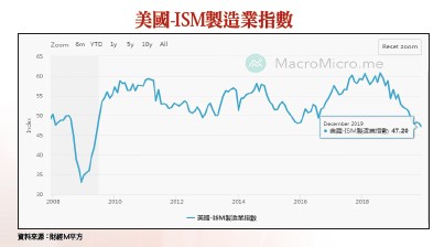 以原油供給面觀察,按照最新資料,二○一九年十一月伊朗原油供給已降至約二一○萬桶/日,主要供應中國與部分中東國家,除非衝突事件擴大,否則中東原油供給出現缺口的機率不高。加上美國頁岩油目前日產量已超過一二○○萬桶,具有一定程度的壓抑性。此外,全球經濟成長減速也阻礙了石油需求的成長。若以美國紐約輕原油期貨價格為基準,目前油價的量化觀察點約在六六美元/桶。若未來原油價格突破六六美元,則整年度全球的通膨壓力將如影隨形,可能嚴重制約全球主要央行執行貨幣寬鬆的力道,不利於股市。若油價回落至六十美元/桶以下,則通膨壓力不大,有利於全球主要央行的寬鬆政策;如果油價停留在六十~六六美元區間的時間拉長,則需視各國本身情況再作個別研判。各位也別忘了美國曾用過的手段,就是必要時宣布釋放戰略庫存來打壓油價。十二月製造業PMI 歐美轉弱亞洲轉強目前除了資金面持續有利於股市發展以外,若論續航力還得觀察基本面的變化。日前全球主要經濟體皆陸續公布了製造業採購經理人指數(PMI);美國方面,十二月美國製造業PMI由十一月的四八.一%降至四七.二%,遠低於市場預期的四九%,創下二○○九年六月以來最低。