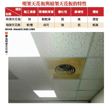 Q(發哥):輕隔間外,還有常見的輕鋼架也是採用輕質性骨架做基礎架構,輕鋼架天花板有兩種,分別為明架天花板及暗架天花板,可否簡單為我們說明一下及它們之間的差異?A(專業廠商):一、明架天花板:是一種方塊形狀的天花板,其規格為60cm×60cm,當骨架架立完成後,便可以將板材一塊一塊蓋上,明架天花板完成。二、暗架天花板:顧名思義就是一種看不到天花板的支撐架,所有的骨架架立完成後,鎖上一片一片的板材,即可完成的天花板裝修方式,其中暗架天花板除了基本的平面造型以外,還能利用板材的特性、設計師的巧思和裝修師傅的巧手,做出獨特的天花板造型。Q(發哥):民眾在自家裝潢時,是否針對輕隔間工程提醒民眾一些應注意事項。A(專業廠商):一、選擇適當的板材,記得浴室和廚房儘量避免使用普通石膏板,以免板材受潮,但防潮石膏板除外。二、如果想要達到隔音效果,可以選擇在隔間內填塞隔音棉(玻璃棉);若想要達到更佳的防火效果,就可以選擇填塞岩棉。三、廠商施工後,基本上僅須注意隔間及天花板施作後的平整度,立骨料時,骨料需與上槽有一至一.五公分的距離,以備當地震發生時有緩衝的空間。一般輕量化建築除了採用輕隔間作法外,亦可在建築規劃階段導入「系統模板免泥作工法」,精準施作且不需後續泥作打底整平,可大幅減少水泥砂漿重量,更可減少鋼筋用量及縮小結構斷面,並達到牆面防裂防漏水效能,增加室內淨使用空間。建築輕量化後受地震力的影響將降低,可以提升建築結構的安全性,而地震來襲時,輕量化建築搖擺變小即樓層變位較小,可以避免建築物的裂縫產生,也是從事建築規劃、設計與施工單位努力研究思考的方向。