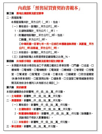 以往常見超高公設比建案將圖書室、乒乓球室、撞球室、健身房等規劃在同一空間,亦即雖規劃有多項公共設施,卻都擠在同一個空間,不僅不具實用性,也很容易衍生無謂糾紛。一般而言,公設比偏高,室內空間尤其各臥房必然隨之縮小,益增家具擺設之困難性,另外,衛浴空間也必然侷促狹小,尤其更難兼顧通風採光,甚至出現暗房而嚴重影響生活品質,因此,購屋前應詳細檢視平面設計圖說,並且務必索取附加標示尺寸與註明各空間坪數的平面配置圖,俾免完工交屋時發生爭執。4.逐項檢視主建物、附屬建物與共同使用部分面積:─附屬建物僅陽台可以登記─共同使用部分應避免計入車位面積就預售屋買賣契約書範本之規定,買賣總面積包括主建物+附屬建物(陽台)+共同使用部分(詳請參閱附表),值得注意的是,自二○一七年一月一日開始雨遮與屋簷都不能登記;另外停車位應該要單獨計價,並且停車位面積不能計入總銷售面積,以免被「含車位價」稀釋單價而仍不自知。5.是否為「含車位價」:─應避免「含車位面積」稀釋單價以往常見大坪數物件包含停車位面積,並且在單價稀釋之後,再以偏低單價作為廣告訴求;其實此一議題大都緣於含車位面積,近年台北市出現基地面積僅四十多坪,銷售面積卻高達五十幾坪,其中緣由即在於將車位面積灌進銷售面積所導致。因此,購屋時切記問清楚是否為「使用面積」或「含車位面積」等重要事項。6.是否為二次施工:─最大缺點為居住空間極為狹窄一般常見之二次施工係緣於挑高三米六,主要係買賣面積較小,藉由中間夾層區隔為上下兩層以增加使用空間,常見上層當睡眠空間,下層當起居空間。一般二次施工都是在交屋後再進行施工,這類產品最大缺點就是居住空間極為狹窄,將來想要換屋出售不易,購屋之前就應該要有此認知。另外小坪數建案常見「1+1房」之規劃設計,其實際效益為何,購屋之前務必三思!7.是否為夾層設計:─應避免「1F+B1F」或「1F+2F」之規劃設計常見都市更新建案由於建蔽率縮小,一樓面積跟著減少,導致規劃設計時常將一樓不夠的部分以地下室或是二樓的面積補足,例如1F+B1F或1F+2F方式做為補償。此一問題表面看來面積不變,但等到交屋之後,就會知道跟原來的想像大相逕庭,並且利用價值差別也很大。8.各空間應標示尺寸:─應充分了解家具配置與室內空間之大小對於小面積建案最直接的看法就是單價較貴,其實這類建案最大的缺點就是一般購屋者無法了解其間所潛藏的問題。例如有一友人問我,他們家最近買了二十二坪的預售屋,扣除三分之一的公設,所剩可能只有十五坪,想徵求我的看法,當時我的回答是回去先把設計圖攤開來看,然後再提出四點應注意事項。(1)第一個問題就是購買標的很可能是中間戶,那應該就是單面採光。(2)第二個問題是「三位一體」,亦即客廳、餐廳、廚房共用一個空間,並且廚房與餐廳之間沒有隔間。(3)第三個問題是廁所沒開窗,通風採光欠佳。(4)第四個問題是陽台極為狹小,無法兼顧空調設備、洗衣機、熱水器之放置,另外還有曬衣與雜物儲藏的空間又該如何處理。後來他告訴我所提出的四個問題都正確無誤,因此,購屋時除公設比之外,平面設計圖還得清楚標示尺寸,這樣才可真正了解家具配置與室內活動空間之大小。舉例而言,臥室最低限度也要容納得下五尺×六尺約○.八坪的雙人床,另外也要兼顧是否擺得下衣櫥、化妝檯等必備家具,這樣才能維持一定的活動空間與居家品質。9.審閱期五天以上:─應充分了解預售屋買賣契約書範本的條文內容根據內政部所公布預售屋買賣契約書範本的規定,必須讓購屋者攜回審閱五天以上(詳請參閱附表),有關這一點,有些購屋者因為比較忙,也沒有注意主管機關的相關規定,常會被現場銷售人員說服,直接繳交訂金甚至簽約,殊欠公允,因此,購屋之前就應該要有此認知,才不致吃虧上當。10.平面車位或機械車位─應注意是否為雙向平面車道目前一般建案大多規劃有一戶一車位,應格外注意的是,除是否為平面車位之外,在選擇停車位時還要注意地下第幾層以及停車位置與大小,尤應避免選購到死角或者是小車位,以確保停車方便性。另一值得注意的是,是否為雙向平面車道,是否面臨窄巷或單行道等問題。11.生活機能與居家品質:─務必實地勘查並檢視平面設計圖生活機能主要著重於周遭環境,例如是否鄰近市場、公園、學校,並且距離捷運或公車站多遠,尤其應注意距離上班地點多遠等。其次,有些小坪數住家,麻雀雖小五臟俱全,但扣除三○%以上的公設比之後,實際使用空間極為狹窄,尤其是客廳、餐廳、廚房的合理配置,因此購屋之前還是要多看多比較為上策。12.房貸比例─小坪數住家應先了解銀行承作貸款意願由於近年小坪數規劃大行其道,銀行對於這類產品之房貸相對保守,因此,購屋之前除應掂掂自己的荷包之外,更應注意建商所承諾的房貸比例在交屋時是否會打折扣。