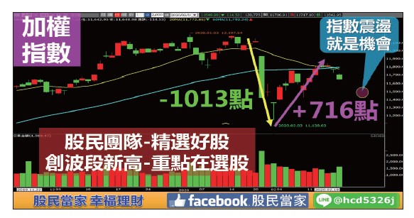 上周筆者跟大家報告,下一站幸福,把握台股拉回第二隻腳,台股從波段低點一一一三八點落底反彈,短短四天反彈六一一點,二月十日拉回打第二隻腳,第一隻腳二一六點下影線,第二隻腳一五一點下影線,雙腳成形,又繼續往上拉抬四三一點,如今台股又來到關鍵價位,月季線死亡交叉處,農曆年前高點買進的,還在套牢狀態,農曆年後沒買進的,已經反彈七一六點,只有乾瞪眼的份,所以這個位置,勢必需要震盪整理,交換籌碼後,才有望再往上攻堅。這一點從成交量較可以清楚看出,越接近武漢缺口防線一二一二八點,一月二十日到一月三十日這一個大跳空缺口,壓力越沉重,成交量越來越萎縮,如果台股要像美股一樣直接往上創波段新高,關鍵就是成交量,至少要維持一千五百億以上大量,才有機會緩步回補缺口。台灣有太多廠商設廠在中國,雖然是陸續復工,但絕大多數延後開工,最早的二月十日開工,營收已經少三分之一,有些廠商延後到月中甚至更晚,二月份營收鐵定比一月更慘澹,這一點要特別留意,避開中國營收比重高的公司。單看指數,會有失真的情況,因為個股表現差異非常大,指數創新高的關鍵,就看台積電,大家可以清楚看到,美股那斯達克、標普500、道瓊工業指數輪番創新高,獨缺一個指數,就是費城半導體,因為台積電還沒創新高,台股要創新高,當然要看台積電,晶圓廠本來就是二十四小時運作,除非遇到天災人禍,過年期間如期運轉,原本就有人輪值留守,影響不大,二月十日也順利復工,影響不至於太大。但是有相當多的個股,卻率先大盤飛越武漢肺炎缺口,甚至創下波段新高,這些股票都有共通的特色,缺貨加漲價效應,產業趨勢向上,營收創新高,來自中國的影響程度相當低,或者完全不受影響,甚至有轉單效應,這些抗疫群英,鐵定是第一季的主流,大家要好好把握。例如元月營收創新高的股票,今年最後期限延後至二月十五日公布,創新高的公司合計二十七家,包含國光生、中再保、福懋科、嘉威、宅配通、紅馬-KY、東捷資訊、全家、漢來美食、大車隊、訊映、曜越、旭富、健策、雲品、鈊象、瑞耘、勤凱、豆府、瓦城、大樹、詩肯、勝品、寶雅、濟生、統一超、安勤,大家不妨多給一些關愛眼神,當中遍及各大產業,確實有寶藏在裡面。