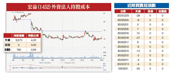百和展望方面,經編網布目前除了Nike以外,各大品牌廠均已通過驗廠(Under Armour、Adidas、New Balance、Reebok),預期 Nike在二○二○年完成驗廠,全年營收有望翻倍。一片式(梭織緹花布)已在二○一九年七月通過Nike 認證成為面料供應商,目前已開始出貨二○二○年春夏款)。業外無錫建案一~二期銷售證在二○一九年年底拿到,整體可認列金額約新台幣十八億元(一期毛利率二六%、二期毛利率三○%),預計在上半年認列。受到疫情影響,下游客戶觀望增、拉貨動能減影響,加工絲廠宏益(1452)一月營收創下近十年同期新低。所幸近期因停工、缺料的問題,客戶對台灣紗、線、布及聚酯等中游紡纖廠轉單詢價增多,宏益訂單能見度已看到第二季,加上董事會同意配發現金股利一.二元,殖利率高達六.七%,具有高殖利率題材,提供股價一定的支撐力量。