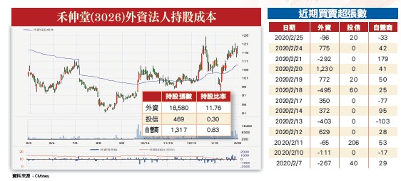因此,綜合市場需求、庫存變化來看,外資法人認為,以目前情勢來看,記憶體第一季價格漲勢,已蔓延至高密度NOR Flash市場,且下游一旦開始回補庫存後,報價漲幅可望上看二○%。台灣被動元件MLCC廠禾伸堂,由於旗下生產線全部位於台灣,因此,不受此次中國武漢肺炎疫情所導致的停工影響,成為台股上市櫃被動元件族群股主要受益者。禾伸堂公告今年一月營收,表現亮眼。受惠去年訂單遞延效應,加以出貨產品組合優化,因此未受春節工作天數縮減影響,一月合併營收達一○.八一億元,月增率八.三%。被動元件陸廠復工不如預期 禾伸堂產線在桃園與宜蘭禾伸堂旗下生產基地,目前分別位於桃園龍潭、宜蘭利澤;受惠市場需求成長下,桃園龍潭廠今年將持續擴產,預計下半年可順利完工,等待機器設備完成進駐後,MLCC總產能屆時將可大幅提升六成增幅,多達一六億顆。由於武漢肺炎疫情延燒,衝擊中國各廠商生產線復工進度不如預期,許多業者擔憂原材料、零組件供應鏈斷料危機,正積極尋找替代方案中。預料禾伸堂受本波疫情影響範圍最低,可望受惠轉單效益下,將配合客戶需求出貨,不僅可供貨台灣客戶,更可進一步出貨至東南亞等中國以外地區。禾伸堂看好網通建設、車用市場、工業需求等,為產業未來應用成長重心,近年致力於優化產品組合,逐步縮減光碟機等低毛利代理業務,積極鎖定利基型市場。目前主要產品,包括主、被動元件及系統模組,營收以被動元件占比約四○%左右為主。其中,自製MLCC占整體被動元件營收比重達九○%,主要鎖定高容、高壓產品製造供貨,代理日系固態電容產品,則挹注其餘一○%營收。法人機構表示,相對於其他被動元件大廠,禾伸堂以大尺寸規格MLCC為主,市場需求較標準型MLCC穩定,因此,產能稼動率正逐季提升,目前約達七○%~八○%水準,加以廠房生產線都設立於台灣,因此看好其將可不受本波疫情影響,除第一季營運可望優於市場同業之外,今年全年營收業績成長表現,展望也相對樂觀許多。台灣高階印刷電路板及IC載板廠南電,公告今年一月自結合併營收為二四.八○億元,儘管因春節連假因素,影響工作天數縮短,使得與去年十二月三○.一三億元相較下,減少一七.六八%年減幅度,但與去年同期二四.五七億元相比,則成長○.九四%年增率,表現優於市場原先預期。其中,中國生產基地位於江蘇省昆山市,約貢獻去年整體營收四○%,廠房主要生產所有印刷電路板(PCB)、部分BT載板。據內資投顧法人指出,PCB對南電營收貢獻比重約三二%,南電昆山廠所供貨產品,主要應用於車用、消費性電子遊戲機;該廠目前維持七五%人力運作(轉),中國境內供應原物料庫存有一個月,中國以外原物料庫存,有二個月安全庫存。