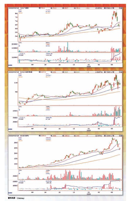 股匯市訊息萬變,提供讀者完整之訊息,使投資人有清楚的投資方向以及對股票有更深的瞭解,欲知更多本篇精彩內容,請繼續往下參考。美國聯準會將聯邦基金利率大舉下調至○%至○.二五%,持續透過量化寬鬆政策,防止新一輪金融海嘯來襲,歐央及全球其他主要央行也持續寬鬆貨幣環境立場。近期仍須持續留意武漢肺炎疫情衝擊全球股市。本周精選產業基本面前景展望佳,營收成長動能強,外資、投信搶籌碼,股價有機會走出波段漲勢鏢股:優群(3217)、瑞祺電通(6416)、倉和(6538)等。優群新竹廠最快下半年擴產優群(3217):電腦周邊設備及零組件專業廠,二月營收○.九一億元,月減三一.八四%,年減一八.五六%;一至二月累計營收二.二五億元,年減一六.六三%。優群目前兩岸設有三個生產基地,台灣廠區以交貨手機/RF相關應用產品為主,中國昆山廠為Type C、Long DIMM(Dual In-line Memory Module,雙列直插式記憶體模組)主要生產基地,四川廠區以DDR(Double Data Rate,雙倍資料率)系列產品居多。根據優群自行估算,目前昆山廠復工率已達六○%,四川遂寧廠更達九○%以上。同時,由於上下游供應鏈復工率出現急拉,客戶立即快速回補庫存,第一周出貨量即已接近前一月整月份水準。法人機構推估,三月營收可拉高達二億元以上,年增率有機會回復正數,不排除第一季營收、獲利皆有機會挑戰年增率同步轉正目標。優群視為搶占世代交替下一波商機的伺服器領域,具Long-DIMM產品線技術優勢,於台灣伺服器供應鏈本波急尋非中國區供貨產能下,已規劃新竹廠預計最快下半年啟動擴產。法人同時預估,優群去年EPS可達五.二元至五.三元,續創歷史新高。今年每股可望配發現金股利達四.一五元以上,以三月十七日收盤股價六十八元計算,現金殖利率達六%以上。法人機構預估優群今年EPS六元。瑞祺電通SD-WAN接單進補瑞祺電通(6416):台灣最大「網安平台」供應商,二月營收三.四三億元,月減二三.四九%,年減四七.六○%;一至二月累計營收七.九二億元,年增五二.二三%。瑞祺電通以往專注於資安設備(網路安全),營收占比高達九○%以上,以去年第三季營收比重,網路安全占六八%、SD-WAN占一六%,整合型通訊系統一四%。新冠肺炎疫情導致終端市場消費減緩,但企業端B2B市場需求卻未受干擾,瑞祺電通傳出已接獲多家客戶下單,對SD-WAN設備拉貨量不減反增,總追加量已達一萬台以上,近期已開始陸續出貨,加以原本相關設備接單、出貨展望能見度即高,推估在手訂單量至少三萬台以上。除既有大客戶通知追加下訂萬台以上SD-WAN設備,另有一間美系廠客戶也要求瑞祺電通在第一季、第二季陸續交貨千台以上,首季業績有望淡季不淡,第二季也因遞延出貨效應,營收可望進一步墊高,上半年有望暢旺,挑戰旺季水準,預估年增率可達三○%以上。上半年受惠Tier 1客戶追單積極,可提前預見旺季水準,同時,新接訂單的量產鋪貨時間點,集中於下半年挹注營收。法人機構預估瑞祺電通今年營收約四九.二九億元,年增約一一.二二%,全年EPS五.六八元。倉和客戶拉貨需求仍高倉和(6538):太陽能電池之印刷用網版(營收占比七○.九九%)、網印耗材買賣(二一.一六%)、非太陽能電池之印刷用網版(七.八五%)專業廠,二月營收一.四八億元,月減一八.五四%,年增率高達一五六.一一%;一至二月累計營收三.三一億元,年增八六.八六%。
