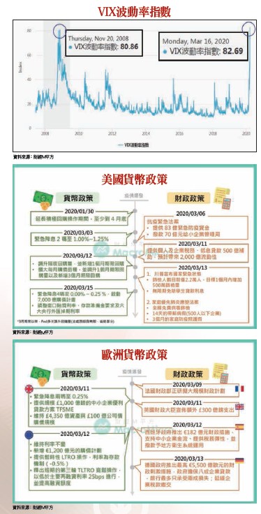 投資人試想,疫情總有一天會受控,猶如亞洲諸國。目前歐、美國家只是正在經歷亞洲國家一個半月前的歷程。國情與對峙手段雖有不同,但只是解決時間的長短不同而已;不論一個月,兩個月,還是三個月,疫情終有受控的一天,一切經濟運作也將逐步恢復正常。第二點,疫情對實體經濟確實會造成影響,部分需求無法遞延,直接受衝擊的如航空、旅遊、餐飲、實體商店等;但也有一部分需求影響較小,只是遞延或是移轉,例如部分實體商店之消費移轉到網路線上。目前疫情對實體經濟的影響程度,各方估值不一。悲觀者如聯準會前副主席,普林斯頓大學教授布蘭德(Alan Blinder)認為,冠狀病毒疫情衝擊之下,美國實際狀況可能已陷入衰退。也有相對樂觀的經濟學家看好美經濟第三季將出現反彈,可望躲過技術性衰退,如金融服務公司Ameriprise Financial首席經濟學家普萊斯(Russell Price)表示,美國第二季將大幅衰退,無庸置疑,但第三季有機會展現強勁復甦,當然,這仍取決於病毒蔓延的情況。全球強力降息與QE 三個月後市場將錢滿為患不過,有一件事是確定的,三個月以後,市場將錢滿為患。現階段不只是美國強力降息與QE,全球主要央行陸續跟進成為正在進行式;日本央行已提前召開金融會議,宣布將ETF的全年收購規模從原先的約六兆日圓擴大到十二兆日圓,此外也將J-REIT(不動產信託基金)年購買額倍增到一千八百億日圓。繼英國、加拿大之後韓國央行也採取緊急措施,將基準利率調降兩碼到○.七五%,刷新歷史新低紀錄,成為韓國利率有史來首度跌破一%門檻。紐西蘭央行也加入降息行列,以經濟前景大幅惡化為由,將官方利率從一%一口氣下降三碼到○.二五%。連出口一向保持強勁的越南,也宣布將再融資利率下調四碼至五%,貼現率則下調兩碼至三.五%。