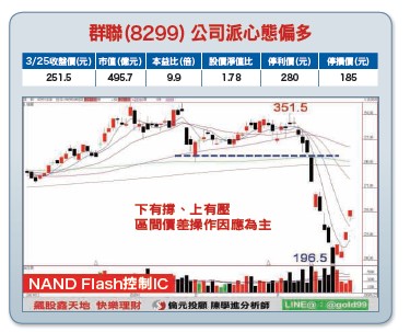 全球經濟恢復速度,以及股市反彈力道與幅度,仍取決於各國政策面、貨幣面和疫情發展而定,若武漢肺炎疫情無法趨緩或停止,在各國相繼封城、關閉邊境,全球經濟陷入大停擺,其所帶來的殺傷力可能更甚二○○八年金融海嘯時期!不過,大家也不必太過擔心,畢竟指數從12197點拉回修正至8523點為止,已大跌3674點,就算未來還要再往下修正,必將有一波報復性反彈機會可期。一、隨著指數下殺拉回,十一個交易日上市公司整體融資餘額驟減452.63億元,截至3/23整體融資餘額水位已大幅驟降至912.85億元,顯見該賣的、該停損的,幾乎都已不計價賣出來,籌碼面可望逐步穩定,已具備反彈利基。二、隨著負乖離過大、技術指標進入超賣區,以及台股已嚴重超跌,如飆股鑫天地LINE@或Telegram群組所言:就算後市還要再修正,也必將先修正負乖離過大、不合理的現象。三、美國標準普爾500波動率VIX恐慌指數已連四日未再續創新高,事先預告反彈機會,就歷史經驗來看,每當VIX指數最為恐慌時,往往是指數處於相對低檔區。四、各國政府及央行救市計畫一波接一波,美國聯準會繼緊急降息四碼至0~0.25%,並啟動高達七千億美元量化寬鬆計畫,Fed於三月二十三日承諾將無上限購入美國公債和抵押貸款證券,另外,預計本周將購買3750億美元的政府公債以及2500億美元的抵押證券,有效緩解「美元荒」流動性危機及美國債市混亂現象。加上國安基金正式宣布啟動護盤機制,有助穩定市場信心。【個股推薦】群聯(8299),NAND FLASH控制IC廠,主要利基題材有:(1)去年每股大賺23.05元,擬配息13元:去年合併營收446.93億元,創歷史新高,年增近10%,毛利達111.49億元,成長逾22%,全年稅後淨利45.45億元,EPS 23.05元創歷史第三高。2019第四季營收及毛利也雙雙創歷史新高。在2019年整體快閃記憶體(NAND Flash)產業慘烈競爭及諸多國際記憶體大廠遭受營收及獲利重挫之際,顯見群聯的雙渦輪成長模式,即NAND控制IC設計與NAND儲存方案營運方針成功,也才能在劇烈動盪的NAND儲存產業穩健成長獲利。
