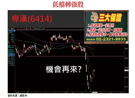 搶反彈的搶錢行情 就是要找到低檔轉強的個股!行情來到壓力與轉折點附近,當然短線就有了壓回或上下洗盤的可能,然而,這或許是小小危機,但也是很大的轉機,現階段的操作策略,就是要低買高賣,漲高不追,但是震盪壓回就是機會,我們在高檔出脫了先前布局的世紀鋼(9958)及金像電(2368),接下來又準備要找低位階股票的機會!我們現在談論的操作,不就是這樣?!那麼在世紀鋼及金像電過後,下一檔可以操作的低檔可能股,會是什麼樣的模式呢?我們以樺漢(6414)為例,股價跌深且距離上方的頸線壓力還有一段距離,像這一類的個股就有可能入選老師搶短的選項之一,而當然以族群及基本面來看,也一定是要品質優良的公司。所以,搶短操作的選股,有一定的邏輯,好公司、股價相對低位階,最重要是明確的籌碼面轉強,我們也正在篩選及準備這樣的標的。