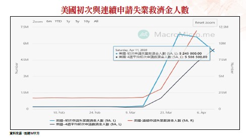 再觀察目前實際的就業概況,截至四月十一日止當周,美國初領失業救濟金人數達五二五萬人,雖較前兩周的六八○萬與六二○萬人下滑,但累計過去短短四周之初領失業救濟人數已突破二一○○萬人,創歷史新高,遠遠超過前紀錄一九八二年秋天的二七○萬人。另據華爾街經濟學家估計,企業大舉裁員與放無薪假的慘況將會持續至五月初,而美國失業率可能會飆高至一五%。顯然,為了控制疫情而實施的管制措施,讓美國出現一九三○年大蕭條以來最慘烈的失業潮,而美國銀行業的一連串動作也給了投資人很重要的啟示,在景氣循環末段千萬不要輕易投資銀行業,因為銀行將因存放款利差縮減使獲利下降,呆帳率可能快速上揚,配息率可能也將不如過往。消費快速下降 衝擊美國經濟從股市的角度切入,如上周所提,本波的反彈可視為針對先前過度恐慌而超跌部分所作的估值修復,接下來反彈波續航力必須觀察企業營運復原速度而定。以相對較容易量化的指標來看,目前S&P500指數之本益已彈升至十七倍以上,超過約十六.七倍的過去五年均值,缺乏基本面支持之追高風險將逐步加大。