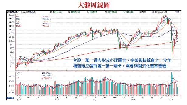 上週的專欄文章提醒你,繼續偏多操作,不用怕,其實已經建議你偏多操作兩個多禮拜了,之前就跟你說,可以在修正靠近四月十四日長紅棒低點時都是買點,停損直接設長紅低點一○一三○,如果你是長期讀者,一路跟著我幫你規劃的路走,應該是賺多賠少的。恭喜專欄忠實讀者 照規劃策略操作持盈保泰因為就算週一碰到美股連跌,被拖累跌了兩百多點下來,還是有一○七二○,距離之前建議你偏多操作的價位至少五百點以上,更不用說波段高點已經漲到一一○○○,整個波段最多帳上獲利達到七百多點。當我的忠實讀者還是不錯的,不敢說百分百都看對,但看對的次數還是挺多的。哈哈,厚臉皮一直自誇個沒完。那之後怎麼看呢?我會覺得週一大跌但是打到季線就收腳,這是多方有防守的態勢有擺出來,什麼意思?就是多方還在努力,沒有因為美股之前連續下跌就自暴自棄,所以你手中的股票或多單也還可以撐一下,一來下面有向上走的十日線、二十日線的支撐,也有比較不靠譜的下彎季線支撐;二來是咱們進場點相對低,現在手上持股帳面上都是獲利的,移動停損可以設稍微寬一點,再怎樣也是少賺,不至於虧損。撐一下要怎麼撐?可以把停損點往上移動了,不用死守四月十四日低點一○一三○,不然抱上又抱下,白忙一場,我會建議把停損點改為參考月線,收盤跌破月線+隔天站不回來再出掉,不然就續抱。萬一心理關卡已成套牢區頸線 暫時先跟著月線操作即可在一一○○○以上,壓力就會比較重了,因為之前一一○○○~一一七○○這段盤整有點久,所以一跌破一一○○○,上面這些籌碼都套牢,現在反彈到一一○○○時難免就會遇到解套賣壓。這種情況很常見,通常是上方做了一個頭部,不管是M頭還是三尊頭,或是高檔整理一陣子,然後跌破頸線,頸線上方成交的籌碼通通都變成壓力,只要反彈到靠近頸線就有人準備賣給你。