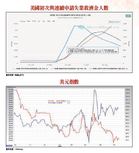 第二點,疫情影響實體經濟之預估的差異性,是影響投資人風險偏好的主要原因。由於新冠病毒之疫苗尚未誕生,疫情何時可明確受控或不再復發,沒有人可以保證,全球目前只能小心翼翼摸著石頭過河。因此,對實體經濟影響的深度,各方預估值的落差自然不小,尤其是台灣GDP增長預估值,國內外法人看法差異性就很大。失業時間的長度 影響更甚於人數由於台灣的出口依賴度達五七%,遠大於韓國的三七.五%,更無法自外於全球經濟而獨善其身,所以必須更加留意美、歐的經濟現況。投資人現階段只能關注少數量化的經濟數據,來感受美國實體經濟的修復概況,美國就業市場數據就是其一。根據美國勞工部日前公布的數據,截至五月二日的當周,初領失業救濟金人數為三一六萬餘人,累計這波因疫情爆發掀起美國史上最慘烈失業潮的失業總人數已達三千三百五十萬人。雖然目前每周新增請領失業救濟金人數已逐周下滑,但仍是百萬為單位,累積總人數相當驚人,也使四月美國非農就業減少二○五○萬人,下跌幅度創下自一九三九年有記錄以來的最大月跌幅,推升失業率狂飆到十四.七%的二次大戰後高點。四月幾乎所有的業種均進行裁員,以服務業裁減一七一六.五萬人為最多,約佔總人數的八三.七%,其中又以休閒旅館業裁減七六五.三萬人最多,其次是教育與健康服務,減少二五四.四萬人,在封鎖及居家政策下,對服務業的衝擊相對較大,可由四月ISM服務業指數大幅滑落至四一.八獲得印證。威脅經濟更大的變數是,這些失業人口未來復業的速度仍是未知數,即使總人數不再增加,只要高失業率拖延時間過久,暫時性的「摩擦性失業」有可能變成長期的「結構性失業」,這將重創消費市場,商業投資、貿易、生產力與房市等也將受到重大影響,進而拖累全球復甦腳步。