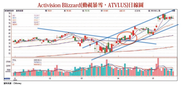 受新冠肺炎疫情衝擊影響,全球居家避疫盛行,宅經濟正夯!知名美系電玩遊戲大廠Activision Blizzard(動視暴雪,ATVI.US),近期股價衝上一年多以來收盤新高,表現遠優於大盤水準。市場分析師認為,Activision Blizzard股價未來仍有上揚空間。宅經濟正夯!外資看好遊戲軟體產業後市今年以來,Activision Blizzard股價一度漲升達一○.六○%(三月十七日盤中低點五○.五一美元至五月十一日盤中高點七五.九七美元計算,波段漲幅最多達五○.四一%),遠優於S&P 500指數同期間的下跌一五.三○%。Barron`s 近期報導,知名電玩大廠「Activision Blizzard」股價短線一度逼近五二週區間高點,Benchmark分析師Mike Hickey指出,該公司當前股價水準,仍未充分反應其後續成長潛能、疫情受惠溢價加持力道,已宣布調高目標價。Hickey表示,Activision Blizzard近期股價表現,應有機會持續衝高,後市可望受惠持續至中期以降的「宅經濟」消費趨勢。市場統計數據顯示,Activision Blizzard旗下三款重要電玩,現階段皆有可觀市場需求。