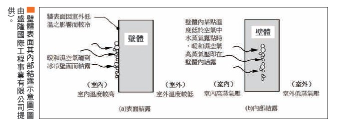 A(專業廠商):一般而言,在台灣地區建築物滲漏後常見之病變,以俗稱的壁癌最為常見,即謂其宛若人罹患癌症而難以醫治,目前除了將牆面打除外,並無其他有效方法可以完全根治,往往成為住戶面對漏水問題時之最大夢魘。1.發霉、腐蝕:當空氣中充滿飽和水分且相對濕度較高時,一旦溫度下降至露點以下,空氣中的水分於壁體表面或壁體中逐漸凝結成水滴,形成所謂的結露現象。一旦室內通風不良,此結露水將易於與油漆、壁紙或黏著劑等裝修材產生化學反應而發霉或腐蝕。2.析晶(白華):一般RC及磚牆表面之粉刷、磁磚或面磚等裝修材,常發生脫或其勾縫析出白色結晶物,此即為俗稱之白華或壁癌現象。主要是水泥成分中的矽酸二鈣或矽酸三鈣與水分子間的水化過程中,產生氫氧化鈣離子,其並非為形成混凝土強度之膠體結構,而是填充於膠體孔隙間的產物;且易溶於水中,故當壁體表面或內部產生結露時,氫氧化鈣離子往往溶於結露水中,經過溫、濕度的反覆作用,透過毛細張力而滲出牆壁表面,再與空氣中的二氧化碳反應生成白色碳酸鈣,此不溶於水的白色結晶物即為「白華」。另一與白華顏色相反之壁體症狀,稱之為黑斑,其主要發生於磁磚或二丁掛等面材上,經常亦被認為係漏水或磁磚材質不良等所致。產生建築物滲漏水的問題因素相當複雜,發哥建議,要避免滲漏水問題,建築物的結構規劃設計與施工品質兩者皆很重要,而其中建築物的施工品質不良,更是目前國內建築不安全最主要的原因。然而,目前台灣建築工地普遍施工人員不足,年輕人不願投入工地,如此採用更好、更創新的建築安全工法,增加建築抗震、防裂、抗漏水能力及延長建築物使用之耐久性,才是未來建築業的新趨勢。