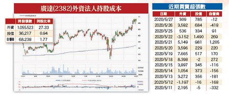 另一方面,台股加權指數若欲更上一層樓,可能需要外資的認錯回補來助一臂之力,否則大概率仍是橫向整理盤;五月二六日外資買超一四一億元,是個好開端,投資人需密切關注其持續性。