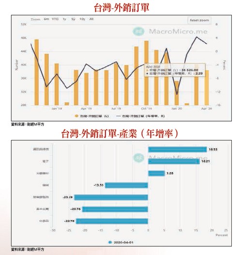 相對於全球主要經濟體,台灣的表現已算是績優生了。經濟部統計處新公布的四月外銷訂單,金額為三八五.三億美元,年增二.三%,連續兩個月年增率正成長,且訂單金額創下歷年四月第三高,大幅優於預期。