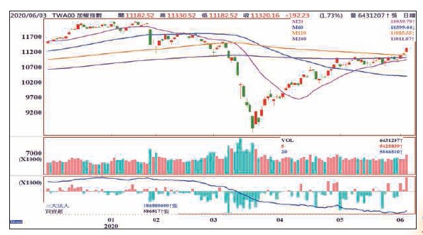 不過當六月初五月營收公布後,以及歐美陸續解封後,須留意是否短線利多出盡做漲多拉回整理,正所謂買在期待解封、賣在解封利多實現時。一旦只要正式跌破月線而讓月線走平下彎從支撐變為壓力,如此少則回測季線一○四○○點上下,多則九千五百點至萬點上下,來反映第二季經濟數據…等財報利空後再往上攻。