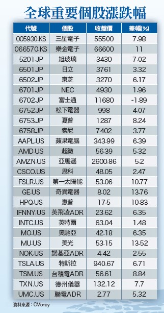 我們先來環顧一下實體經濟,世界銀行(World Bank)六月八日剛發布的最新經濟預測顯示,今年全球經濟恐萎縮五.二%,創一五○年來最慘紀錄,比國際貨幣基金(IMF)四月出爐的世界經濟展望報告還悲觀,當時IMF預估今年全球經濟萎縮三%。其中,美國今年GDP衰退六.一%,明年才能轉正成長率四%;歐元區今年衰退九.一%,明年正成長四.五%;日本今年預估衰退六.一%,明年正成長二.五%;預估中國GDP只能保一,明年應可反彈到六.九%;而巴西與印度今年各自衰退八%與三.二%,明年巴西正成長二.二%,印度明年正成長約三.一%。