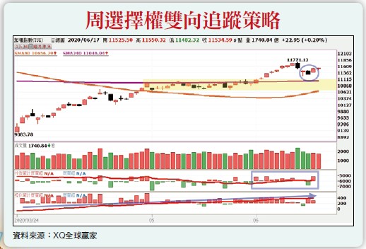 整體來看,大盤仍維持上漲趨勢不變,內資態度相對積極,短線目標先看前高一一七七一點,若能站穩便有機會向上挑戰萬二關卡,可以溫漲(買權多頭價差)策略布局。