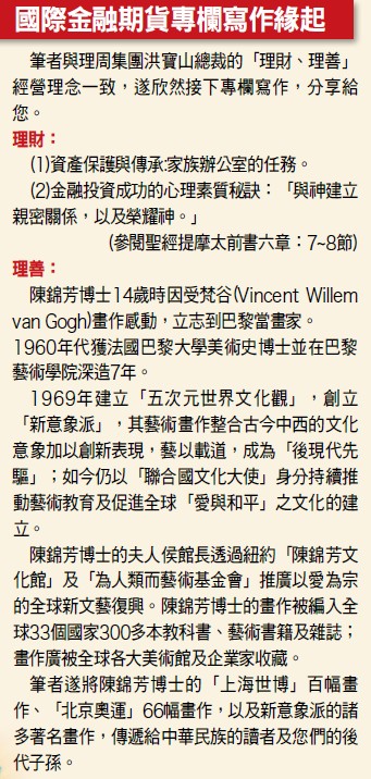 在股市方面,美元吸引資金避險的特殊性質,往往形成股市下跌時,美元指數上漲;反之,當股市走揚,美元指數易走跌。並且,美元指數會撼動以美元報價的黃金及其他期貨商品價格波動,故本周專欄主標的眉題改為:活用《美元指數理財》主標依黃金及其他期貨標的內容,按每周專欄寫作之實用性及其操作實務調整,分享讀者。