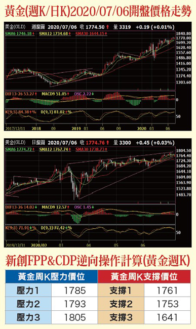 輝瑞和BilNtech SE開發的一個實驗性新冠疫苗展現出安全性,並使患者產生了新冠抗體,這使之在獲選疫苗中處於領先行列。市場關注的美國六月份非農就業人數意外的好於預期,加上全球股市大幅的上漲,黃金的避險需求開始削弱。