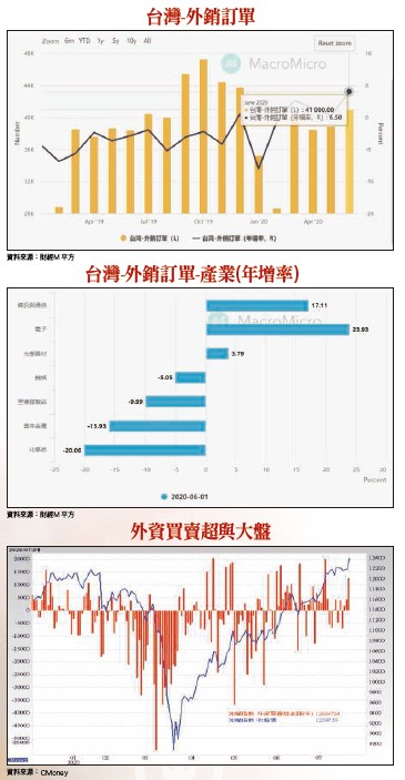 實體經濟方面,六月外銷訂單金額為四一○億美元,創下歷年同期新高,年增率為六.五%,為二○一八年九月以來最大漲幅,且大幅優於市場預期。