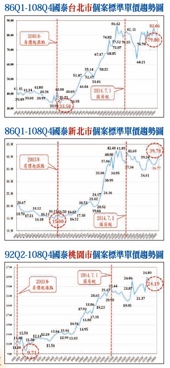長久以來,全國各地空屋餘屋數量相當龐大,惟在房價幾乎每隔一段時間都會呈現向上攀升趨勢,加以國人「有土斯有財」的觀念根深柢固,終致房價長期呈現漲多跌少趨勢,而導致雖然整體房市一直存在供過於求狀態,卻不見房價大幅下跌,尤其最近這一波自二○○三年一路飆漲至二○一四年台北市率先實施囤房稅之後才出現小幅回跌,及至二○一六年財政部再祭出房地合一稅,跌勢方較明顯,然自二○一八年台商逐漸回流迄今,房市又再度呈現緩漲情事,此可由建商與一般企業,甚至投資客亦現身爭相購地見其端倪。