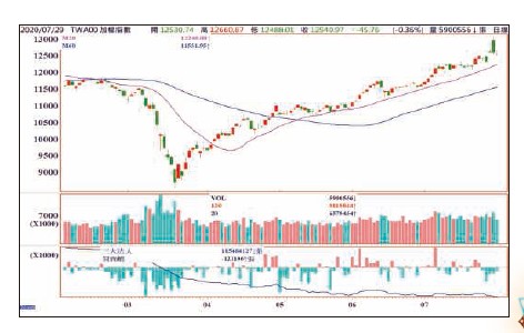 至於台股,七月二十七日在台積電漲停帶動下,指數截至七月二十八日創下13031點歷史新高,目前台股仍是沿月線盤堅,除非跌破月線並造成月線下彎,才有機會回測季線進入區間中段整理。不過目前看來,應該還是距美國十一月三日大選前後一段期間愈近,就愈比較需要留意是否會出現較大幅度的劇烈震盪整理。