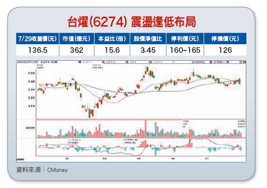 【操作建議】股價於5月8日拉回整理至今修正期間已近三個月,從型態來看,股價形成大三角形收斂格局,如能突破5月8日160元與6月17日156元的高點連線壓力(約在152元),中多結構即可完成。