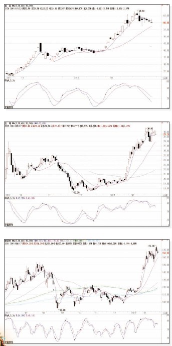 (2)日KD指標的K值出現兩次黃金交叉的訊號,也就是KD指標戴眼鏡的發動點於2011/12/21出現,後面股價續漲往上飆漲到176元。