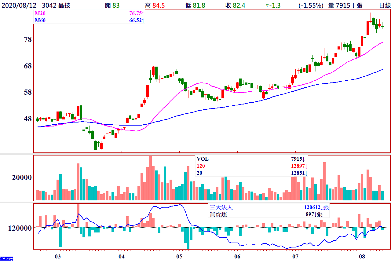 本週精選產業基本面前景展望佳,營收成長動能強,外資、投信搶收籌碼,股價有機會走出波段漲勢鏢股:晶技(3042)、萬達光電(5220)、鼎炫-KY(8499)等。