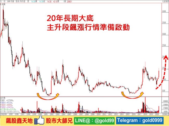 (2)產業及股價處在對的趨勢上:產業前景持續看好,再者,股價歷經長達近二十年打底完成後,籌碼穩定性相對為佳,正準備啟動一波主升段飆漲行情,初升段從3.88元一路大漲來到18.25元,計上漲14.37元,若依主升段1.382及1.618計算,主升段行情從6.93元起漲以來,預計目標分別上看至26.8元及30.2元,目前股價約14元附近,上檔空間還很大。配合趨勢走多向上不變,下檔只要守穩月線或季線不破,預期後市仍有再創新高機會(※基本面資料若有異動,依公開資訊觀測站最新訊息為主)。基於風險考量,設好停損停利(詳見附圖說明)。