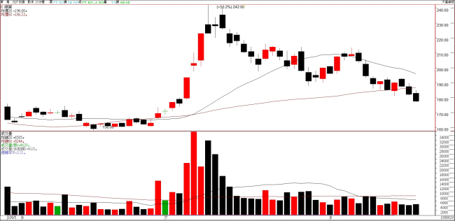 原相七月股價一度漲到242元,近期震盪走低,八月十九日收盤177.5元 ,半年線176元將是最強支撐,下半年進入營運旺季,會有多頭行情。
