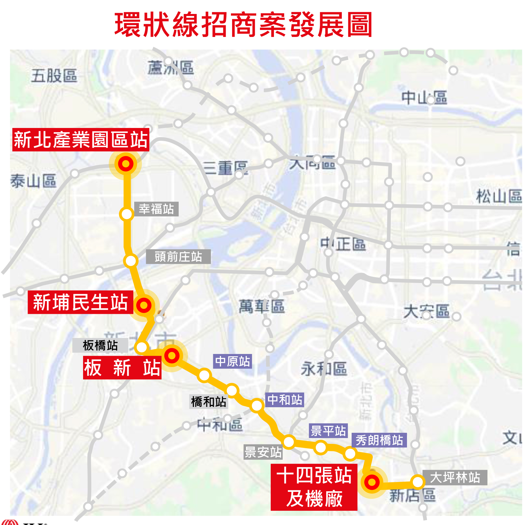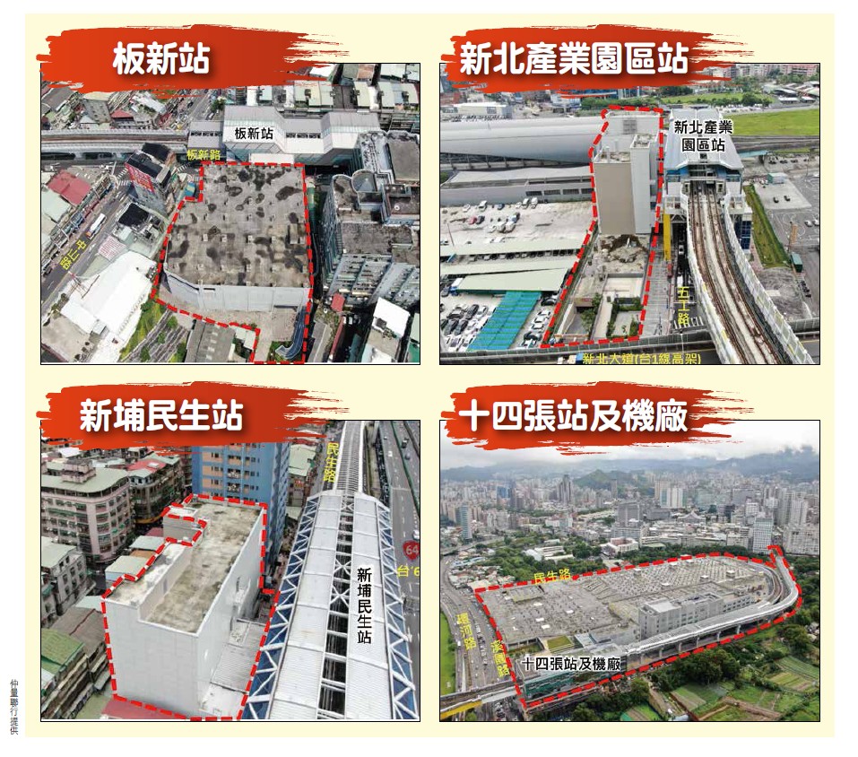 此外,委由仲量聯行擔任招商顧問的四站,分別是板新站、新埔民生站、新北產業園區站,以及十四張站及機廠(如附圖)。