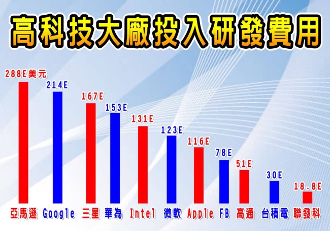 2008~2016年QE由0.8兆美元增至4.5兆美元,但M2貨幣供給率並未大增僅在5~7%間,表示銀行資金貸不出去,銀行為讓資金活用及創造更大利潤,將資金大量借貸給尖牙股及有前景的獨角獸,QE明顯助長高端科技股競爭實力,亞馬遜一年研發費用高達288E美元,Google約214E美元,微軟123E美元,蘋果116E美元,FB為78E美元。由於研發費用大增,加大這些高端企業的競爭優勢,蘋果獲利由2008年57億美元不斷成長至2019年約562億美元,市值也得以突破二兆美元,除了蘋果在服務業收入及穿戴裝置攻城掠地外,最重要是庫藏股、股息提高及分拆等都是吸引投資人青睞的主因。