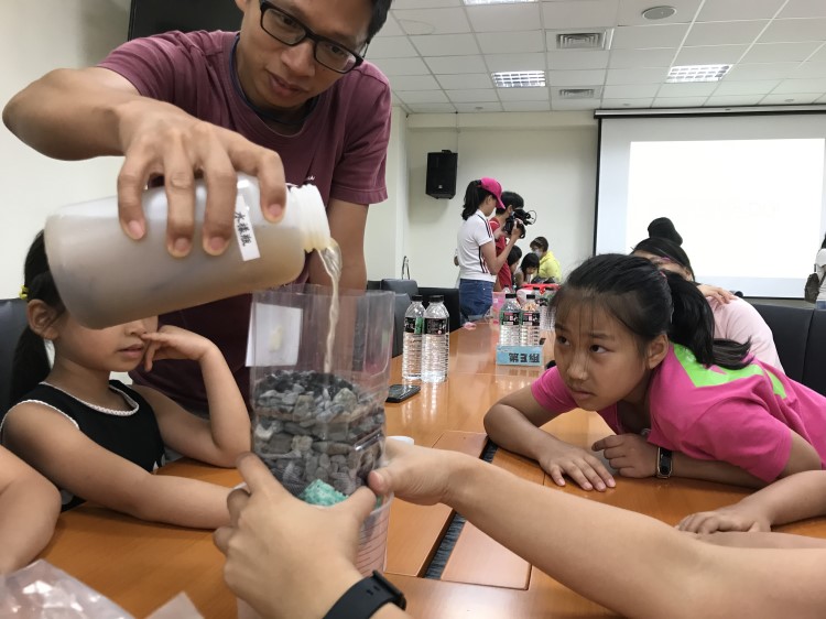 活動中寓教於樂,先在「接水」遊戲中,察覺「水怎麼從指縫中溜走?」接著親子共同想出省水妙方,最後讓小朋友DIY手做淨水器,培育水循環小尖兵。有趣的是,講師以「ㄚ滴水道探險記」故事穿針引線,生動描繪小水滴在下水道的種種經歷,最後跑進水資源回收處理廠重獲新生,奇妙的旅程,不論大人、小孩都能深刻了解下水道和回收的重要性。