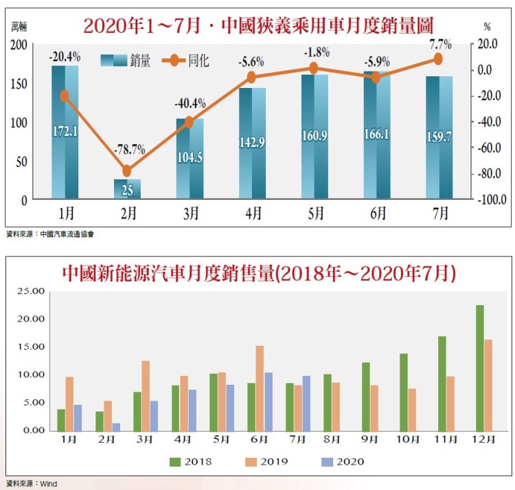 乘聯會指出,隨著肺炎疫情各項防控措施日漸常態化,加以中國汽車產業鏈仍繼續復甦,車企營運、促銷力道亦持續加強推動下,料將可進一步提振中國汽車市場消費信心,將直接促進中國汽車八月銷量再度回升。