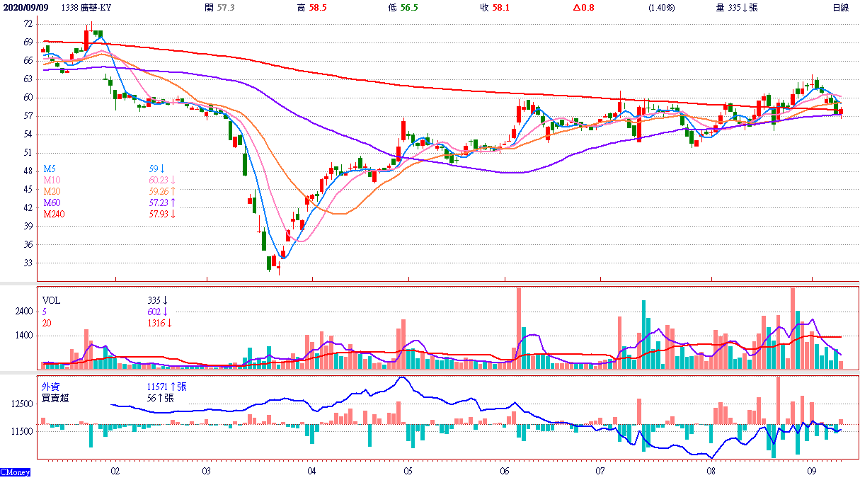 廣華-KY墨西哥廠去年儘管成功縮減虧損,但今年又遭逢新冠肺炎疫情影響,預料轉盈機會因此降低;但五月份開始復工後,整體產能利用率持續改善,預期虧損有望持續收斂。此外,中國車廠為樽節成本考量,希望能夠直接供應車用內飾件,廣華-KY積極爭取訂單成功,成為車廠第一階(Tier1)供應廠,議價能力隨之提高。