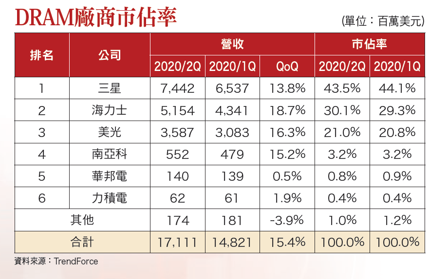 DRAM方面,因server DRAM領域獲利能力最佳,吸引供應商持續投入,結果導致供給量不斷增加,第三季起買方因生產動能放緩、DRAM庫存量已超過健康水位及預期跌價心理,購買意願降低,server DRAM出現供過於求,TrendForce研判第四季server DRAM價格季跌幅將由原先預估一○~一五%,擴大至一三~一八%。