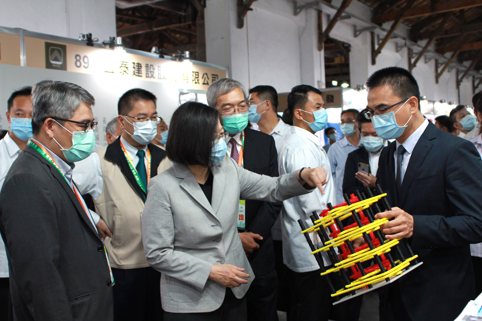 台灣在歷經九二一大地震,之後又有○二○六台南大地震及隔年的花蓮地震,不少老舊建築倒塌事件,因此,蔡英文在巡視各展場時,對建築安全履歷協會理事長戴雲發多年來所發展「建築安全履歷」的推動,以及現場展示「柱中柱」的施工法特別感興趣。
